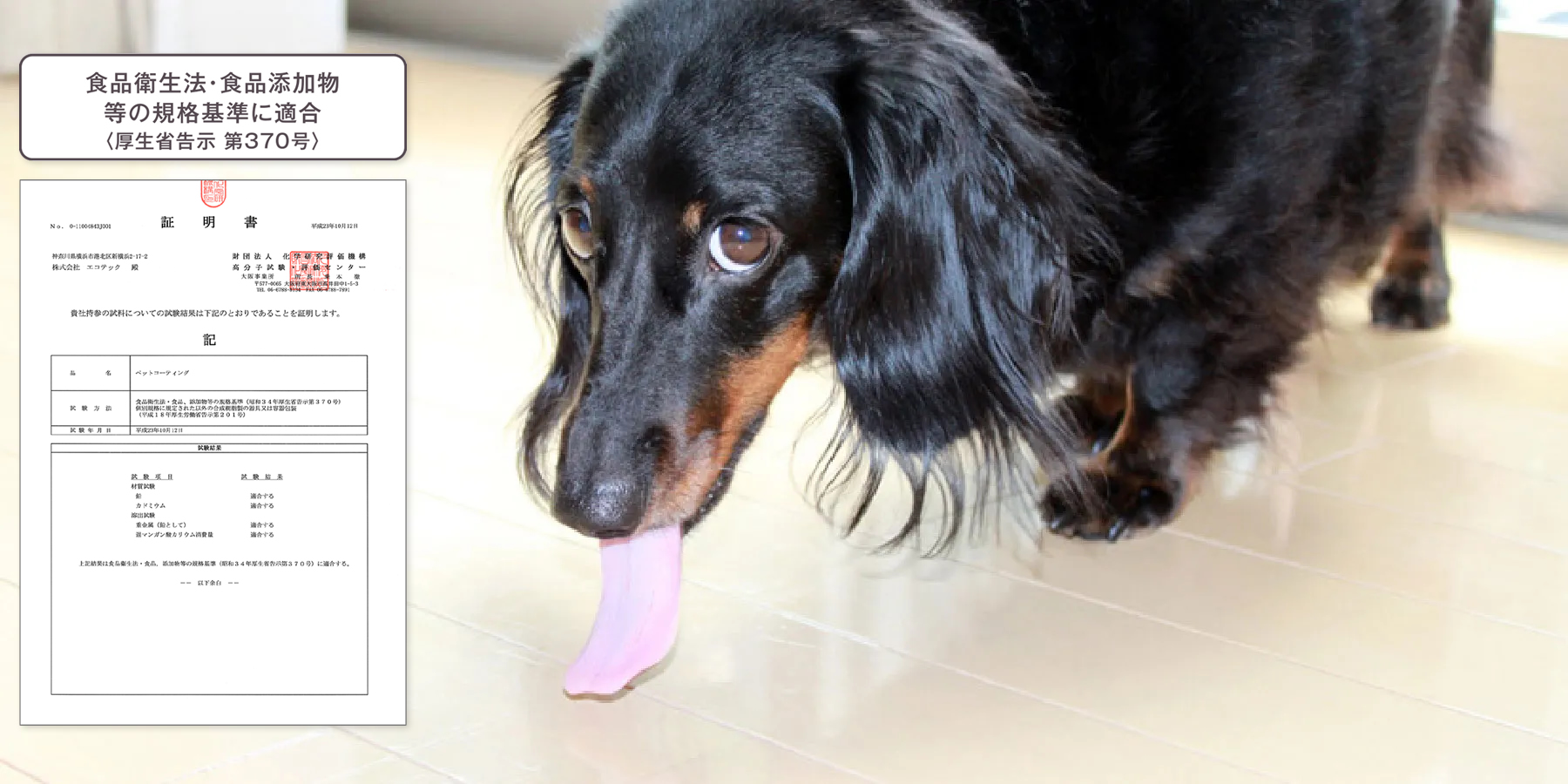 厚生労働省が定める「食器の安全性」の規格に適合。愛犬がフローリングをなめても安心です。