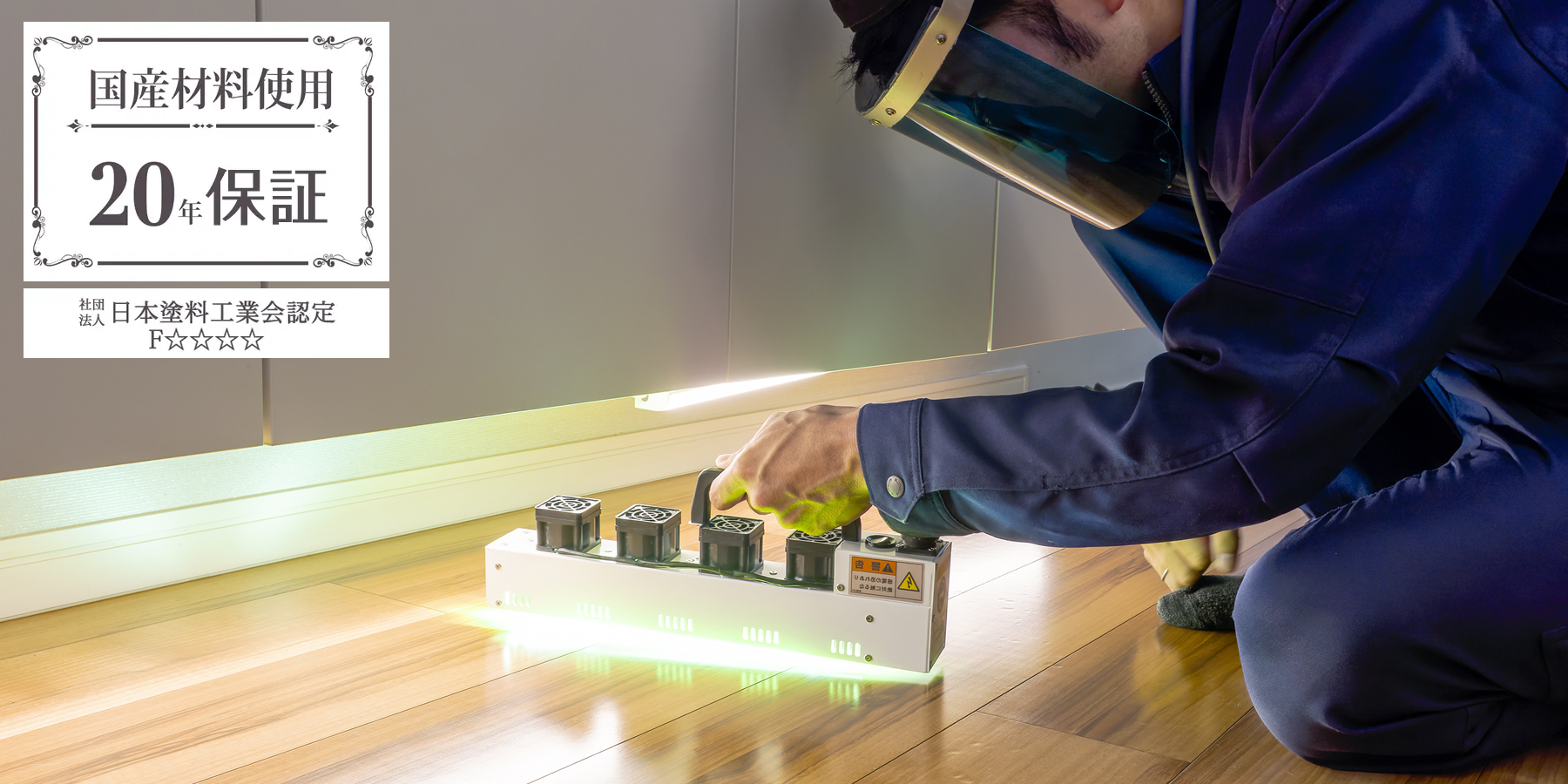 愛犬の床は、専用の機械で光をあてることで瞬時に硬化させる「光重合化」という技術による施工を行うので、