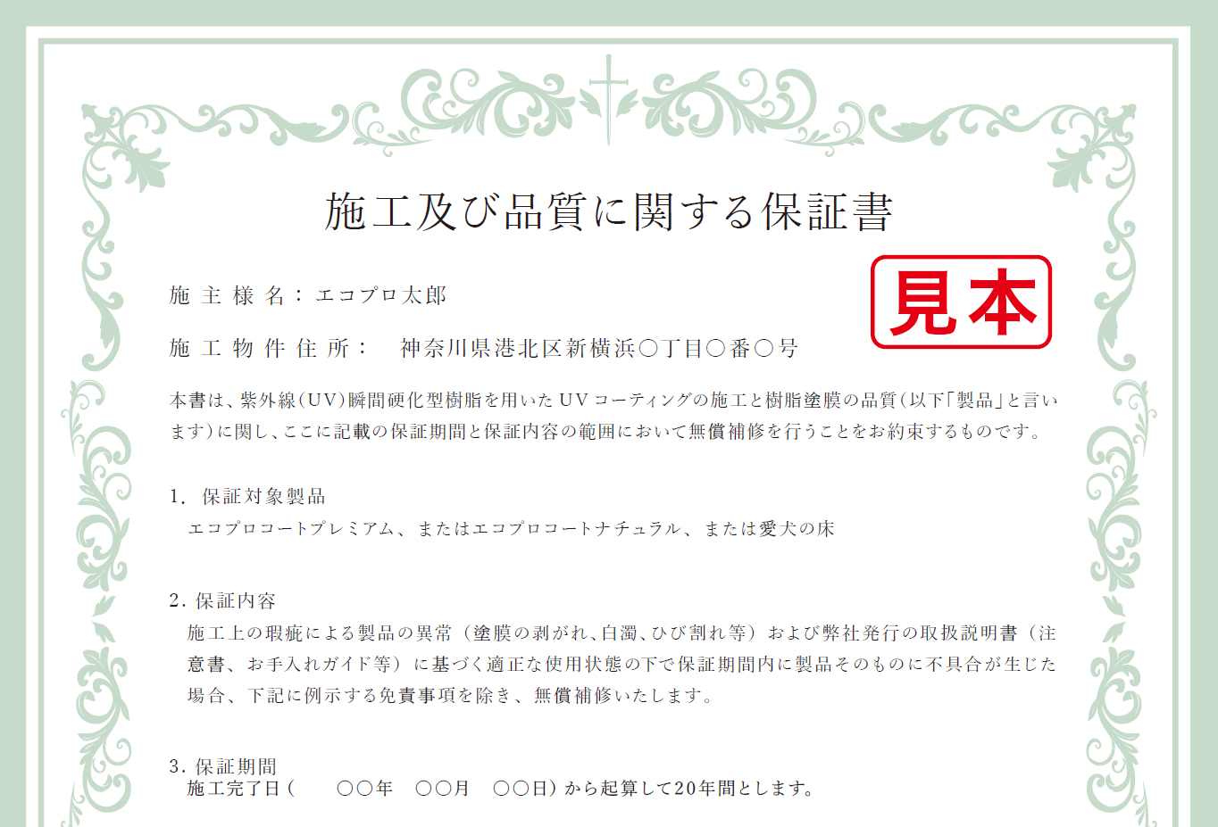 万が一、施工上の不具合があった場合は、無償対応をお約束する保証書を発行いたします。