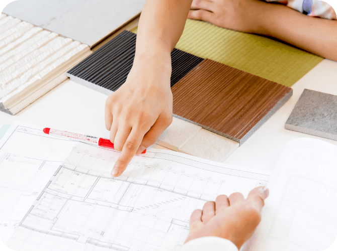 愛犬の床を施工する、お宅のお図面をお送りください。施工をご希望されるフローリングの面積に合わせて、詳細お見積りを作成しご確認いただきます。お図面がお手元に無い場合も、ご安心ください。㎡数・畳数をお教えいただくか、現地調査時に技術スタッフが計測することでも、お見積りの作成が可能です。