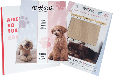 まずはお電話、またはお問い合わせフォームから、無料施工サンプル・パンフレットをご請求ください。実物のフローリングに、愛犬の床を施工したサンプルをお送りいたしますので、その防滑性能や各種の家庭薬品に対する強さを、実際にお手にとってご確認ください。