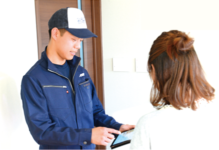 事前に施工スタッフが、ご自宅の床の状態を確認いたします。