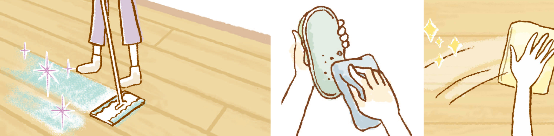 - ●日々のお掃除は、モップで砂・ホコリを取り除いてください。※1
